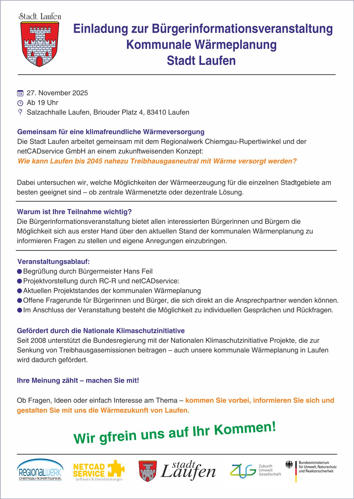 Einladung zur Bürgerinformationsveranstaltung Kommunale Wärmeplanung
